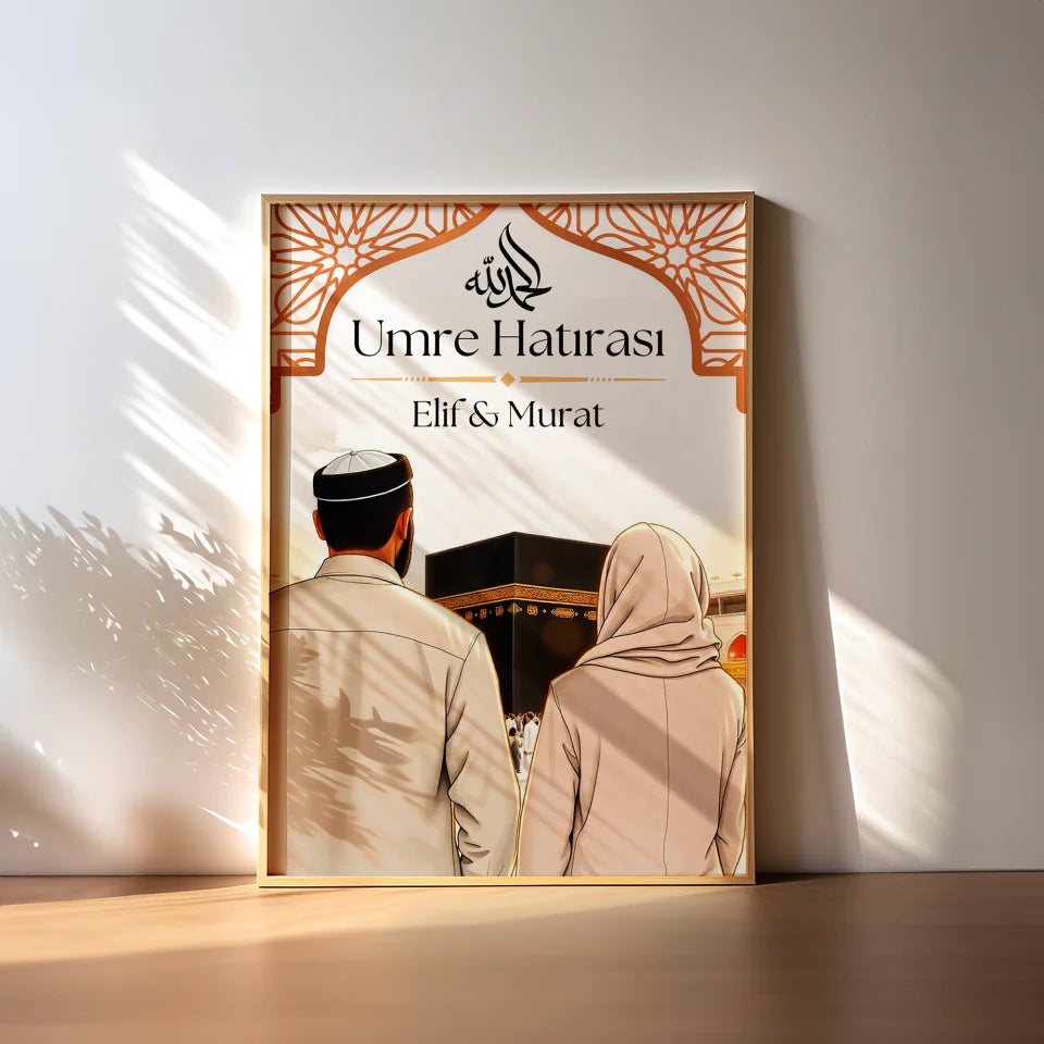 Umre ziyaretinizi unutulmaz kılmak ve bu özel anıyı sevdiklerinizle paylaşmak için kişiye özel Umre hatırası posteri! Bu poster, isim eklenerek tamamen kişiselleştirilebilir ve Umre ziyaretinizin anlamını evinizde yaşatır. Sevdiklerinize manevi bir hatıra sunmak için mükemmel bir dekoratif seçenek sunar.