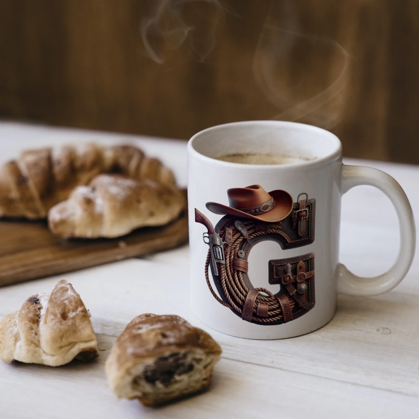 Kovboy Vahşi Batı Temalı Baş Harfli Kupa Bardak - Kişiye Özel Harfli Tasarım - Western Tarzı Hediye
