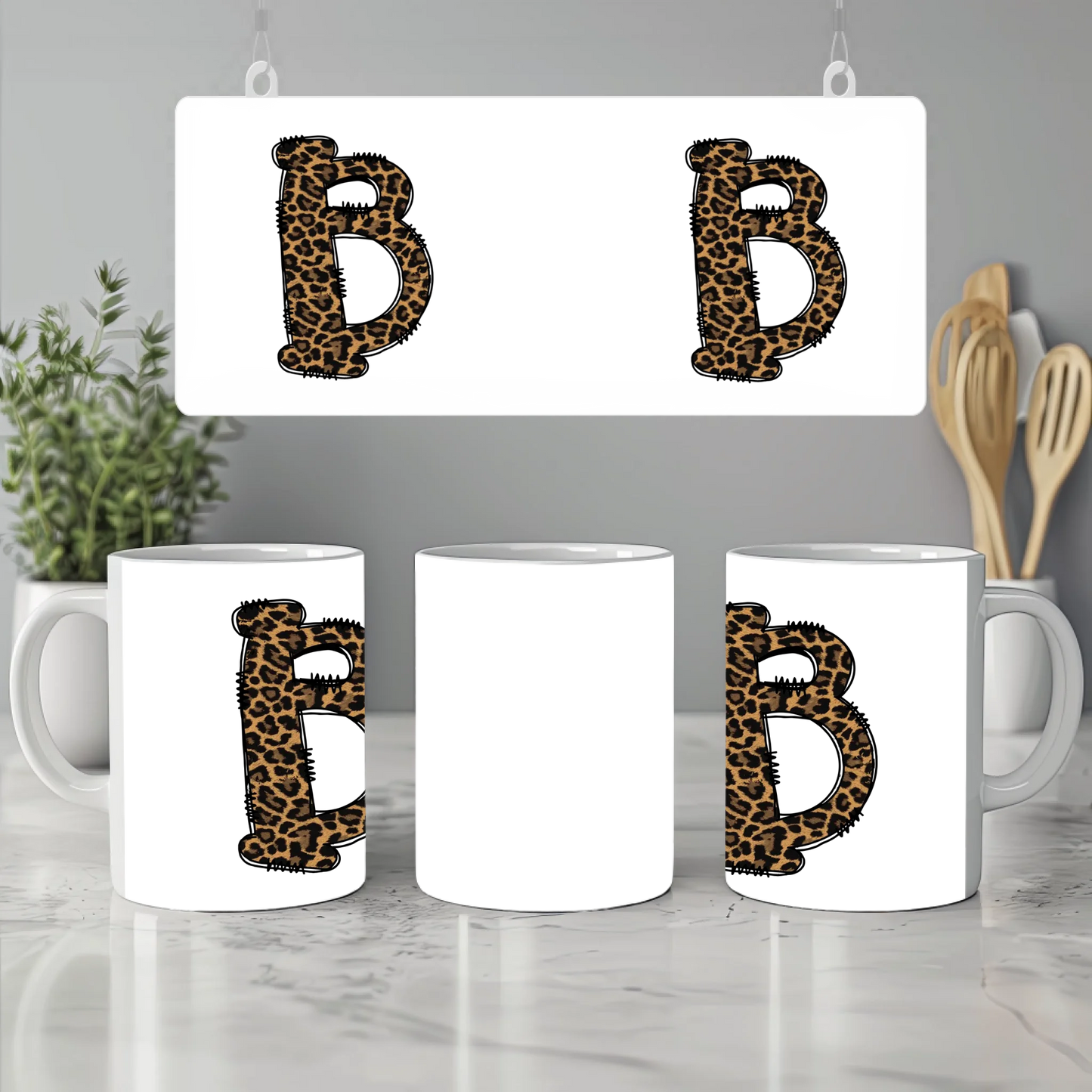 Leopar Desenli Baş Harfli Kupa Bardak - Kişiye Özel Harfli Hediye Fikir - Hayvan Desenli Tasarım